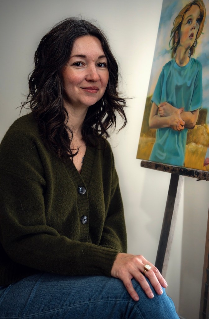 A central Kentucky artist specializing in expressive and narrative portraiture, Hannah Crabtree received her BFA in painting from Belmont University in Nashville, Tennessee in 2009. After 13 years of running an organic farm with her husband, raising two children, and working as an art teacher, she waded back into a creative practice in 2025. She loves creating custom portraits for clients that aim to tell a story, while exploring themes of motherhood in her own personal work.
